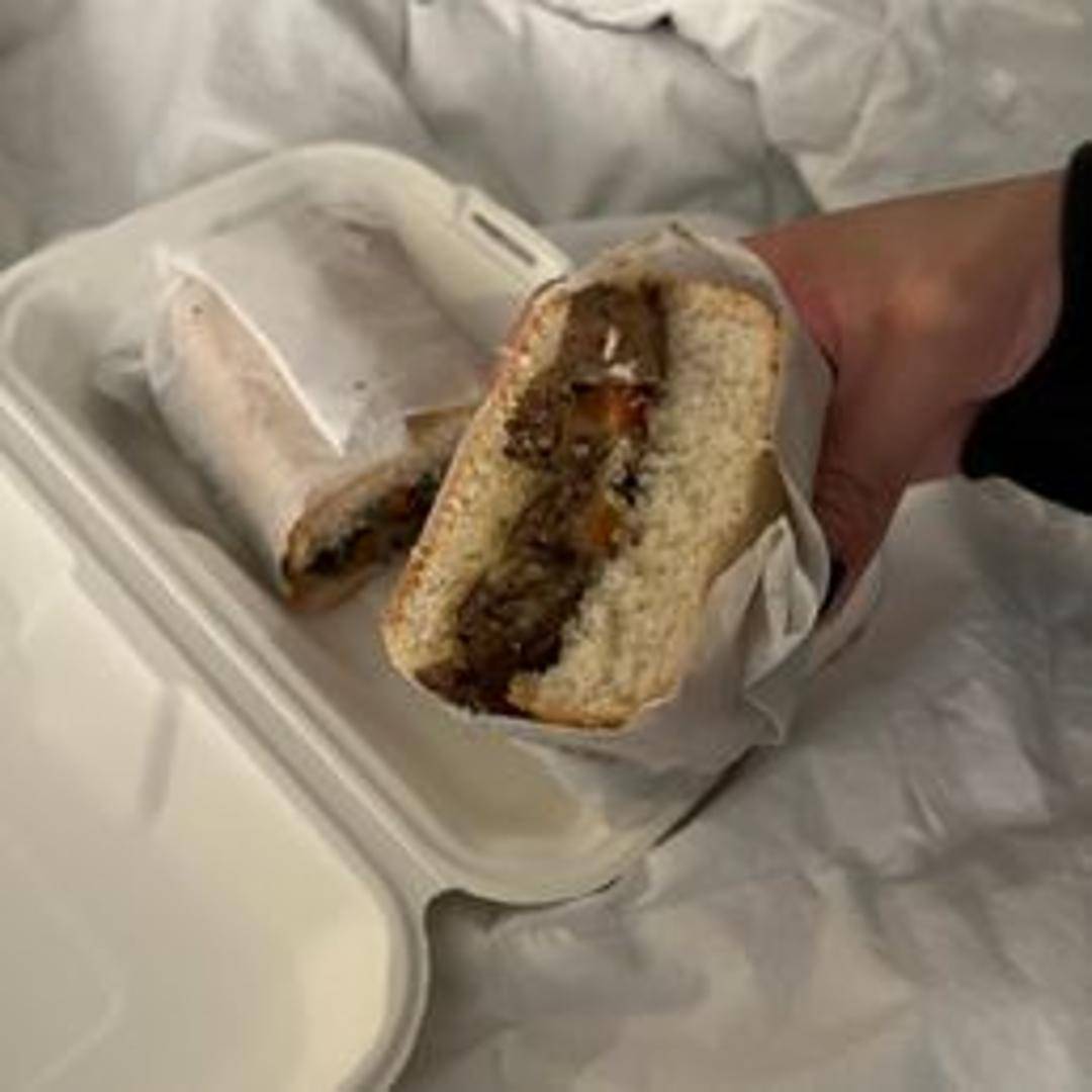 Thinly sliced plant-based steak sautéed with onions and peppers, topped with melted vegan cheese on a hoagie roll.