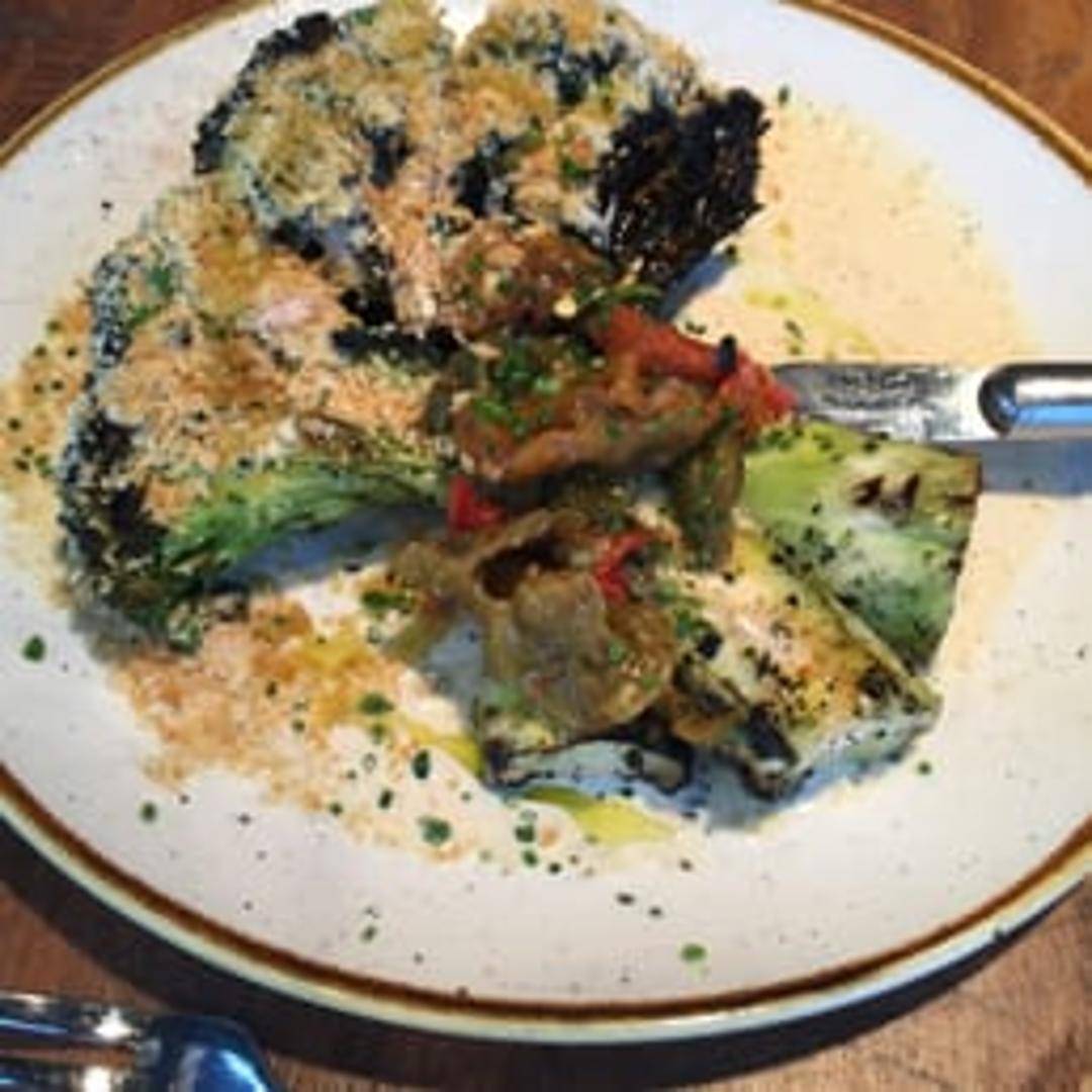 A fresh twist on a classic, this Caesar salad features crisp romaine lettuce tossed with creamy Caesar dressing, crunchy croutons, and grated Parmesan cheese. Elevated by the addition of tender-crisp grilled broccoli florets, which impart a subtle smoky depth to the traditional flavors.