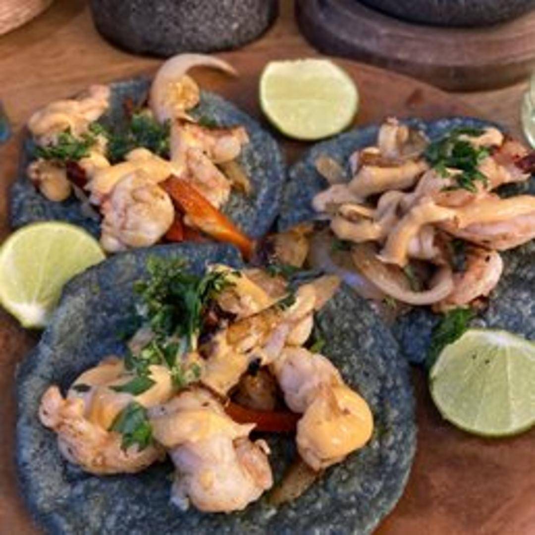 Grilled or fried shrimp served in warm corn or flour tortillas. Topped with shredded cabbage, pico de gallo, and a creamy cilantro-lime sauce.