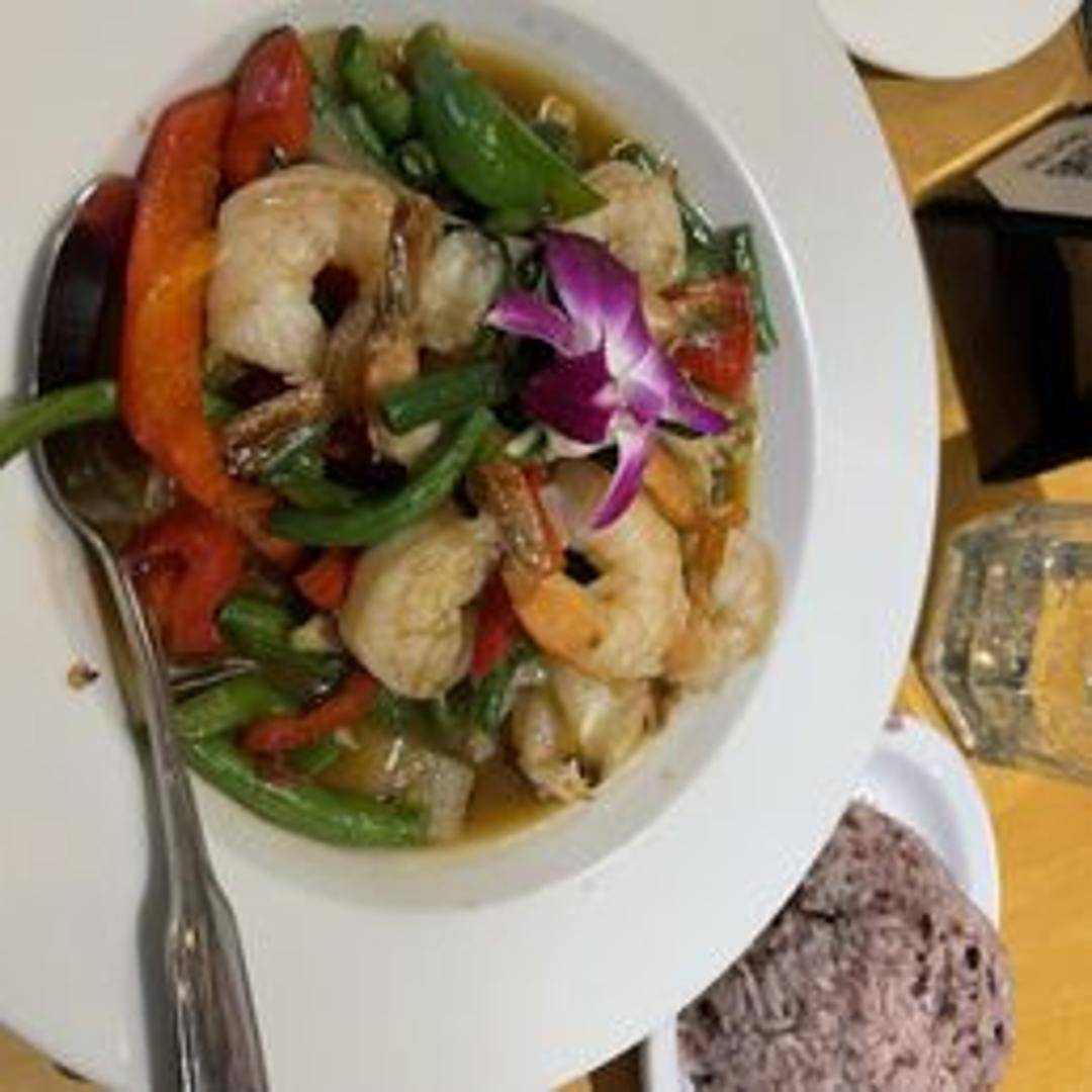 Stir-fried protein of your choice with Thai basil, bell peppers, onions, garlic, and chilies in a savory sauce.