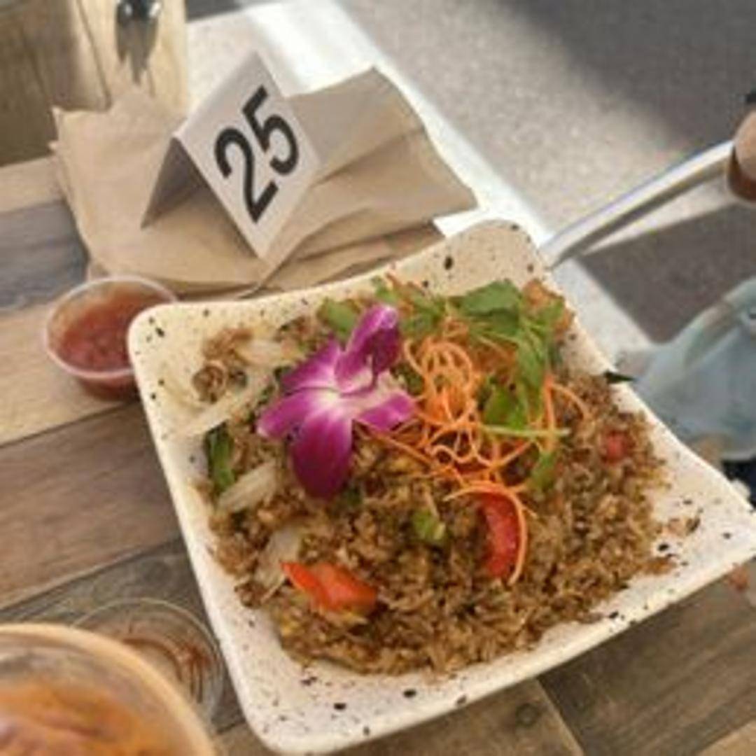 Spicy and fragrant fried rice with your choice of protein, stir-fried with fresh basil leaves, bell peppers, onions, and chili peppers in a savory sauce.