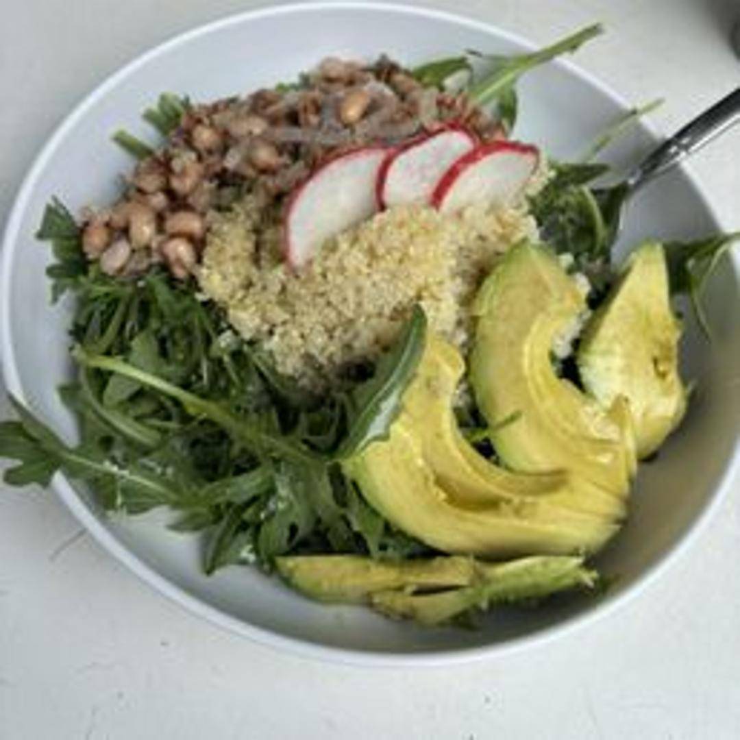 Nutritious and flavorful bowl with quinoa, seasonal vegetables, protein options (grilled chicken, tofu, or black beans), and a light, vibrant dressing.