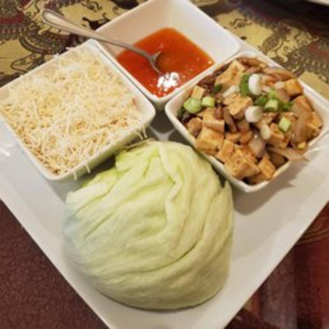 Savory and light, featuring seasoned tofu stir-fried with water chestnuts, mushrooms, and other fresh vegetables. Served with crisp lettuce cups for wrapping and a flavorful dipping sauce on the side. A refreshing and healthy appetizer or light meal.