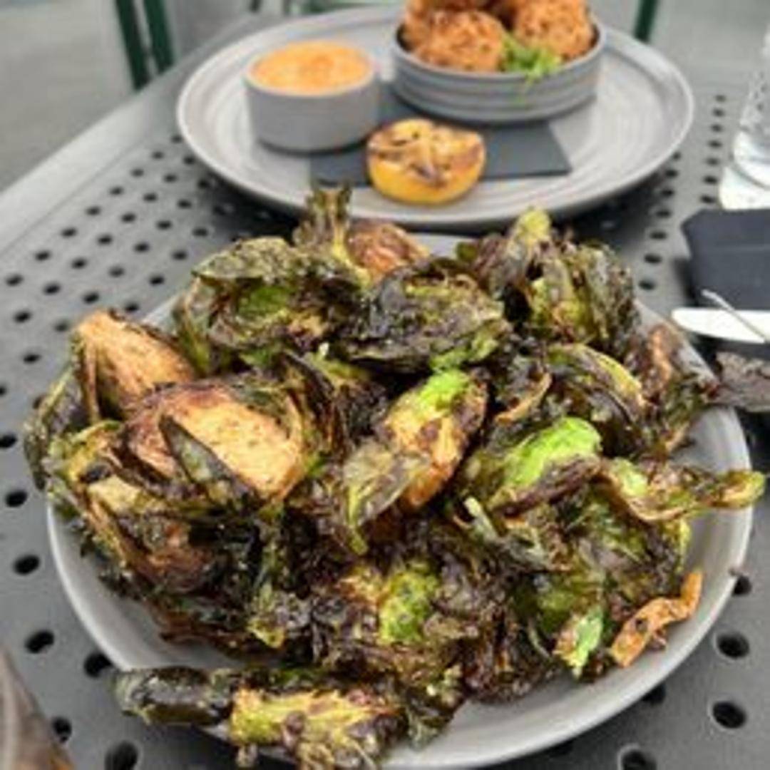 Crispy Brussels sprouts, often prepared with a flavorful glaze or sauce, showcasing both bitter and sweet notes. May include additions such as bacon, nuts, or balsamic reduction.