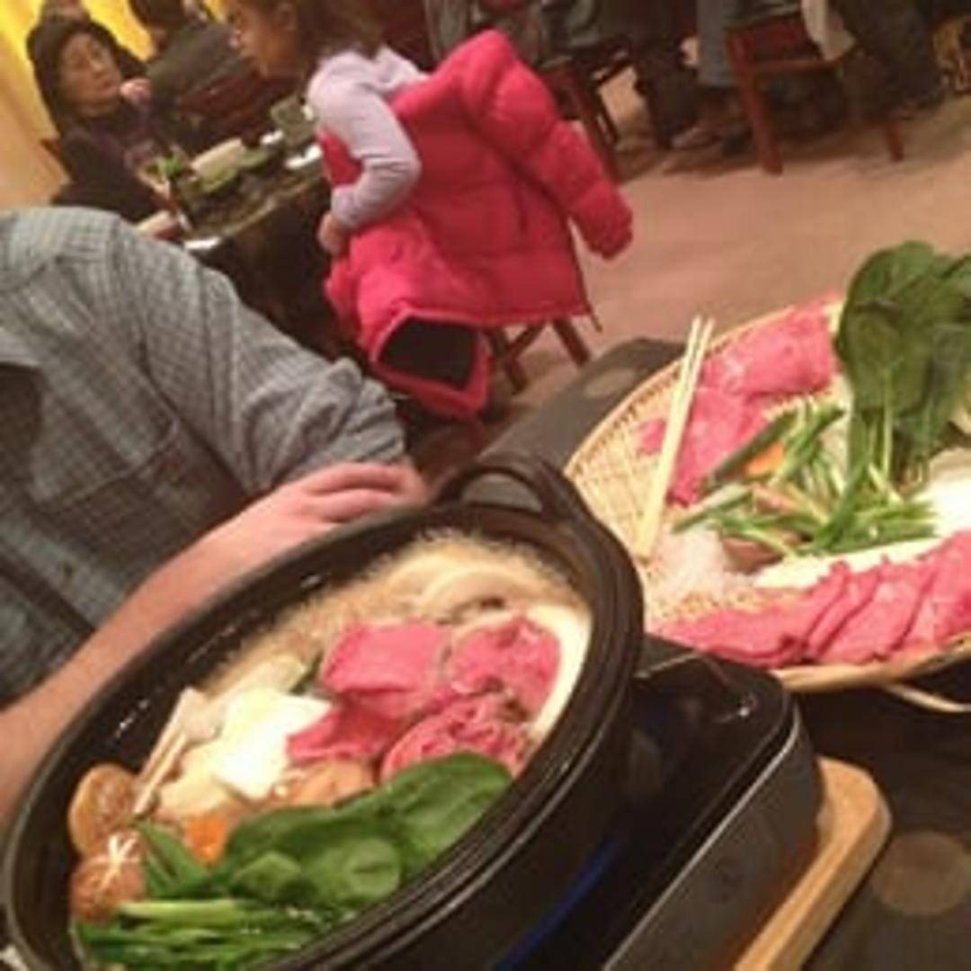 A heartwarming Japanese hot pot dish, featuring thinly sliced premium beef, an assortment of fresh vegetables, delicate tofu, and glass noodles, all simmered in a rich, subtly sweet soy-based broth. A perfect communal dining experience.