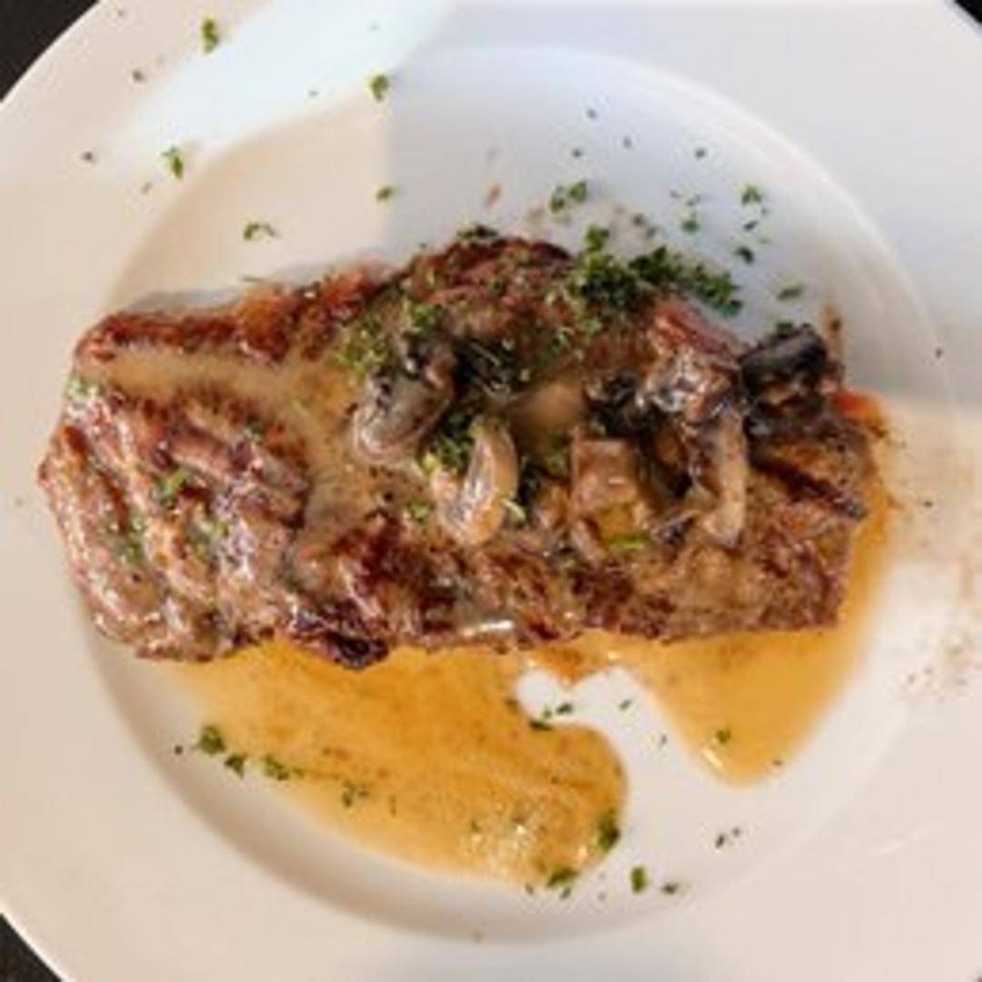A perfectly grilled New York Strip steak, known for its rich flavor and firm texture. Seasoned with Angelo’s signature blend and cooked to your preferred temperature.