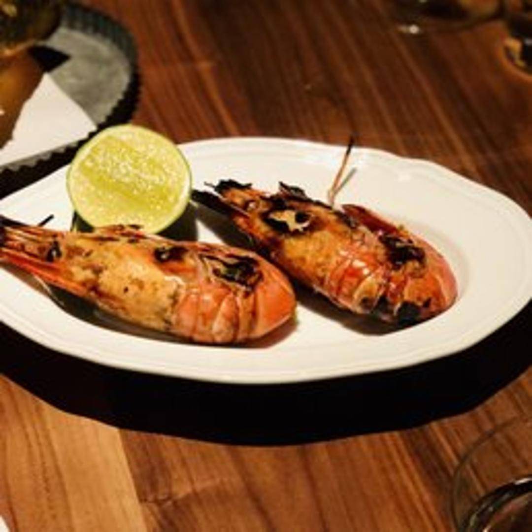Exquisite wild-caught spot prawns, known for their remarkable sweetness and delicate texture, precisely grilled to enhance their natural flavors. Each prawn is cooked until just tender, developing a light char that imparts a subtle smoky aroma, allowing their inherent quality to shine through as a truly luxurious seafood offering.