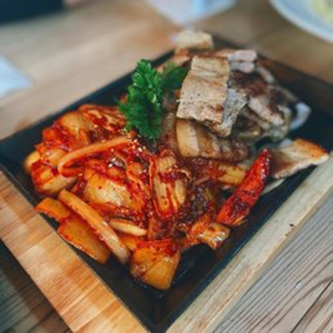 Savory pork belly slices expertly paired with Anju House's signature homemade kimchi. This classic Korean combination offers a delightful balance of rich, fatty pork and tangy, fermented spice.