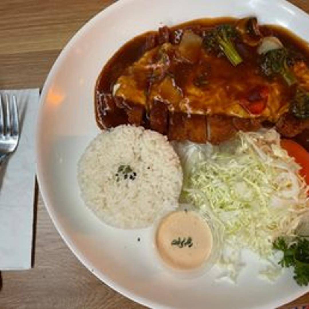 Crispy, deep-fried pork cutlet blanketed in melted cheese. Served with a savory dipping sauce and a side of fresh slaw.