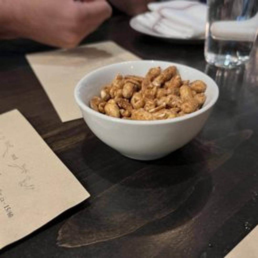 A flavorful medley of nuts roasted and seasoned with a blend of savory and aromatic spices.