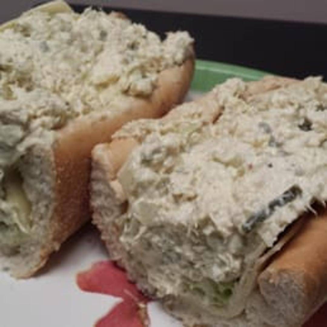 Shredded chicken mixed with mayonnaise, celery, onion, and seasonings, often served on bread, crackers, or lettuce.