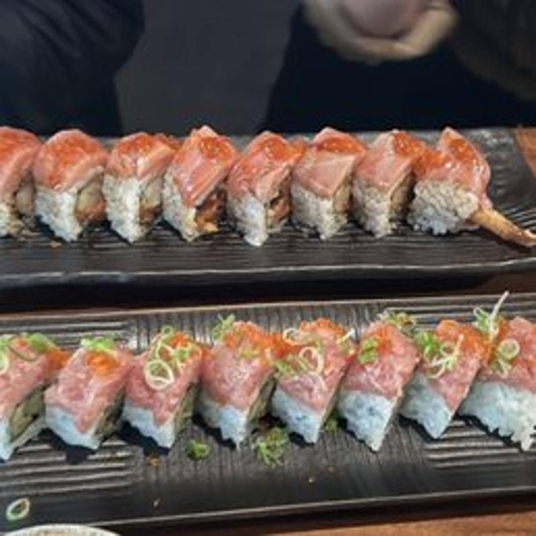 Shrimp tempura, crab mix, and cucumber inside, topped with avocado, spicy mayo, and eel sauce.