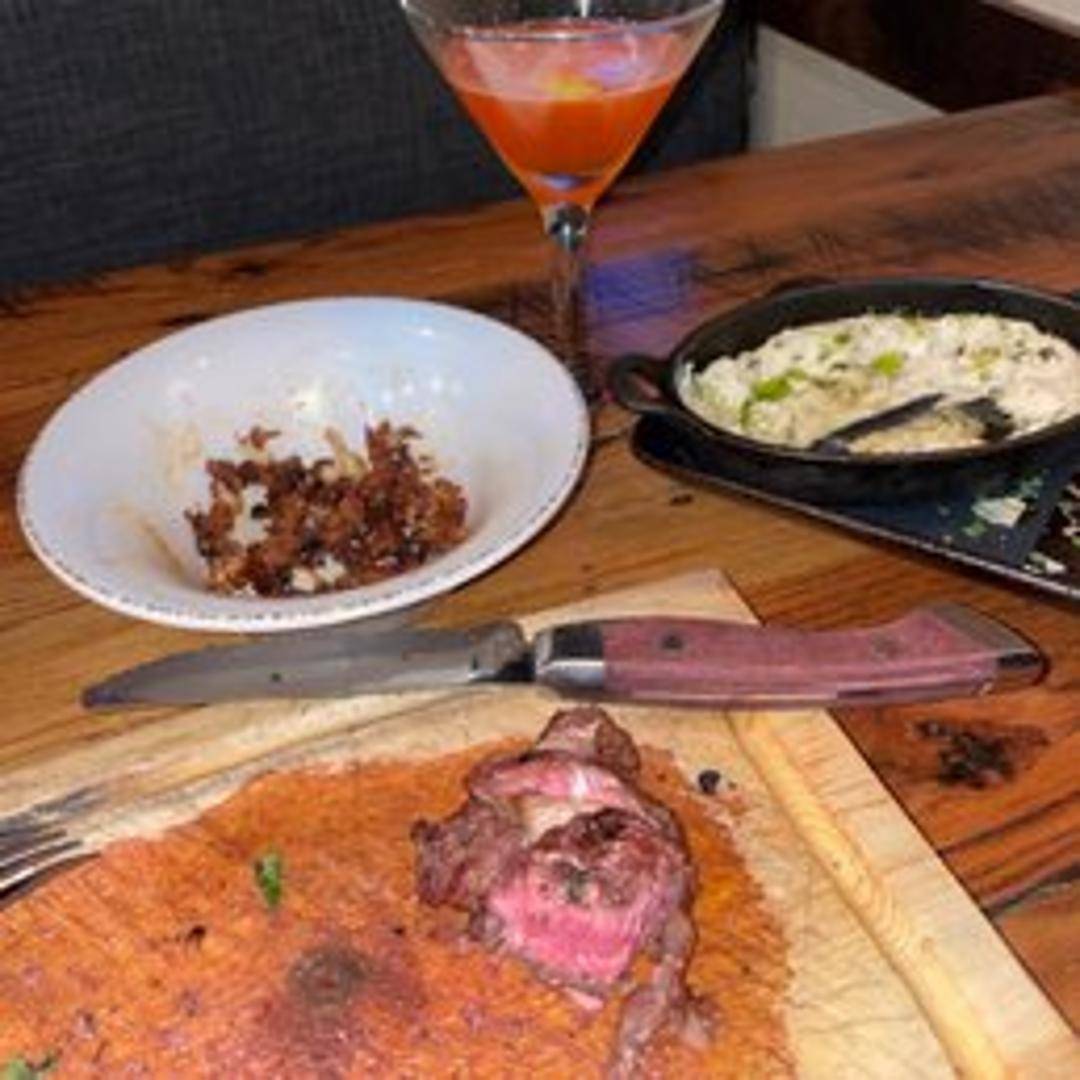A premium cut of bison ribeye steak, grilled to your preferred temperature. Known for its rich marbling and robust flavor. Served with your choice of sides.