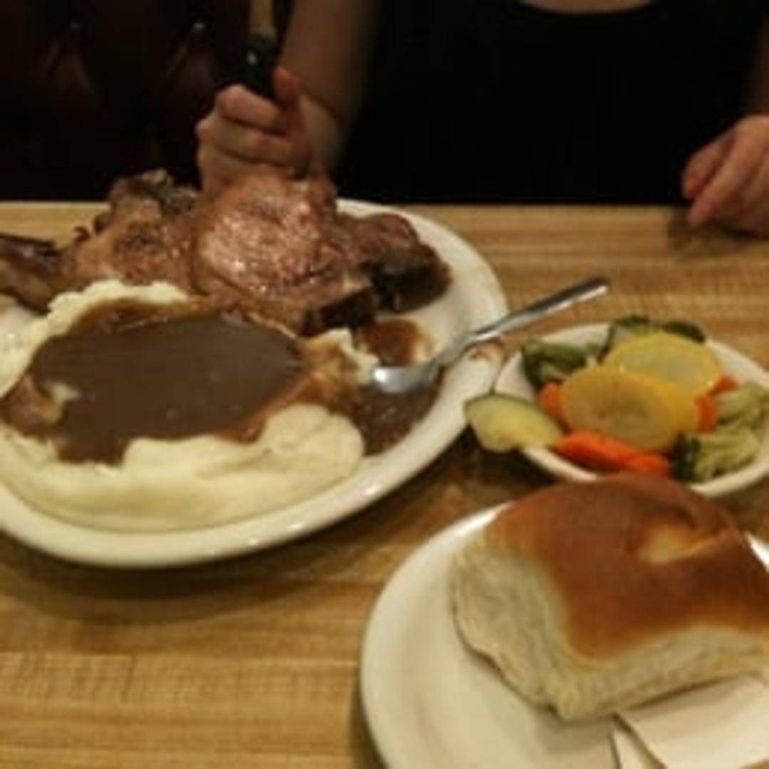 One juicy pork chop grilled to perfection. Served with two eggs any style, breakfast potatoes, and your choice of toast or a biscuit.