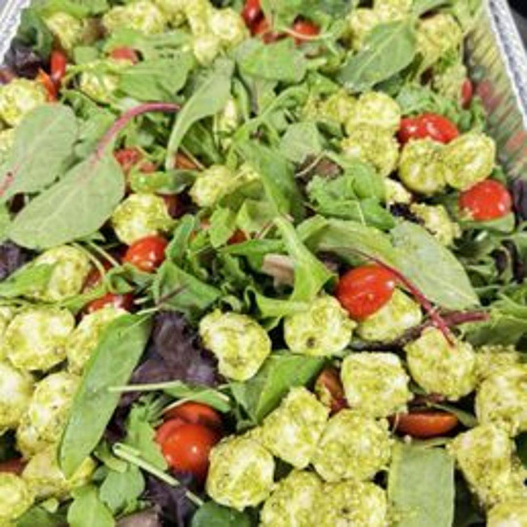 A simple and refreshing salad featuring fresh mozzarella, ripe tomatoes, and basil leaves, drizzled with balsamic glaze and olive oil.