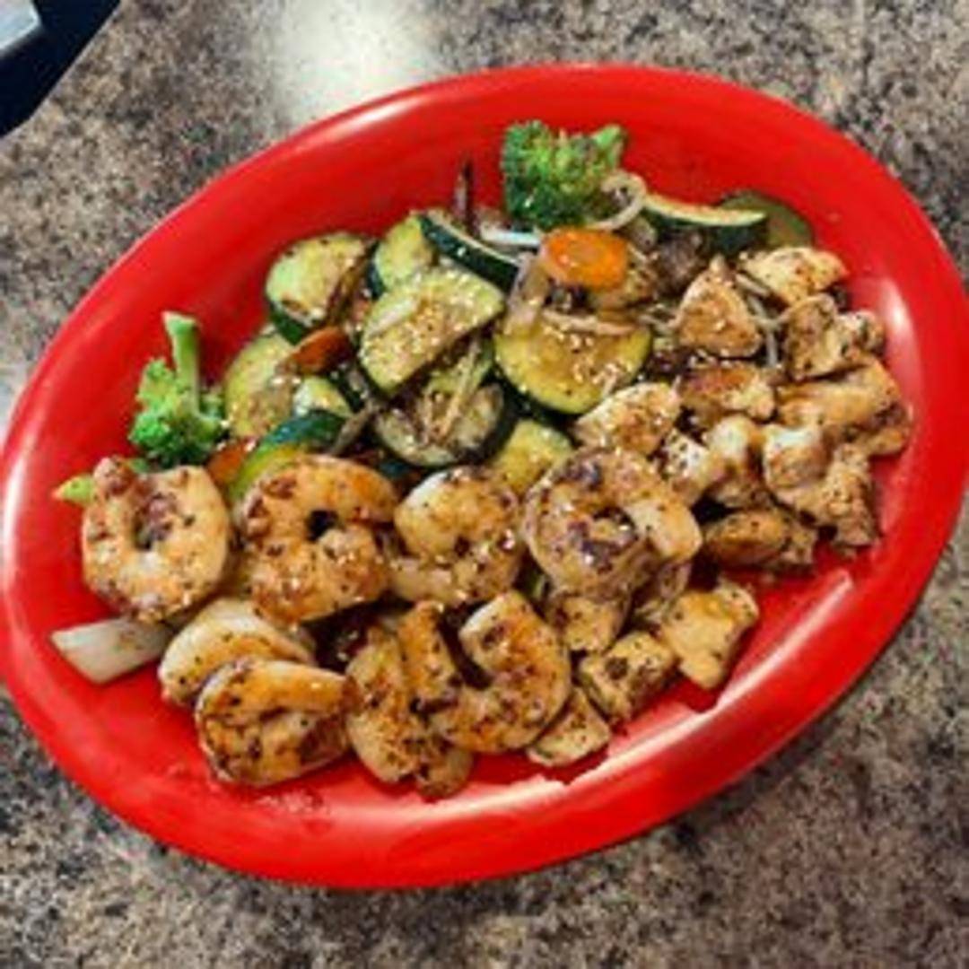 A generous portion of succulent shrimp, prepared with your choice of sauce. Served with rice and a side of fresh vegetables.