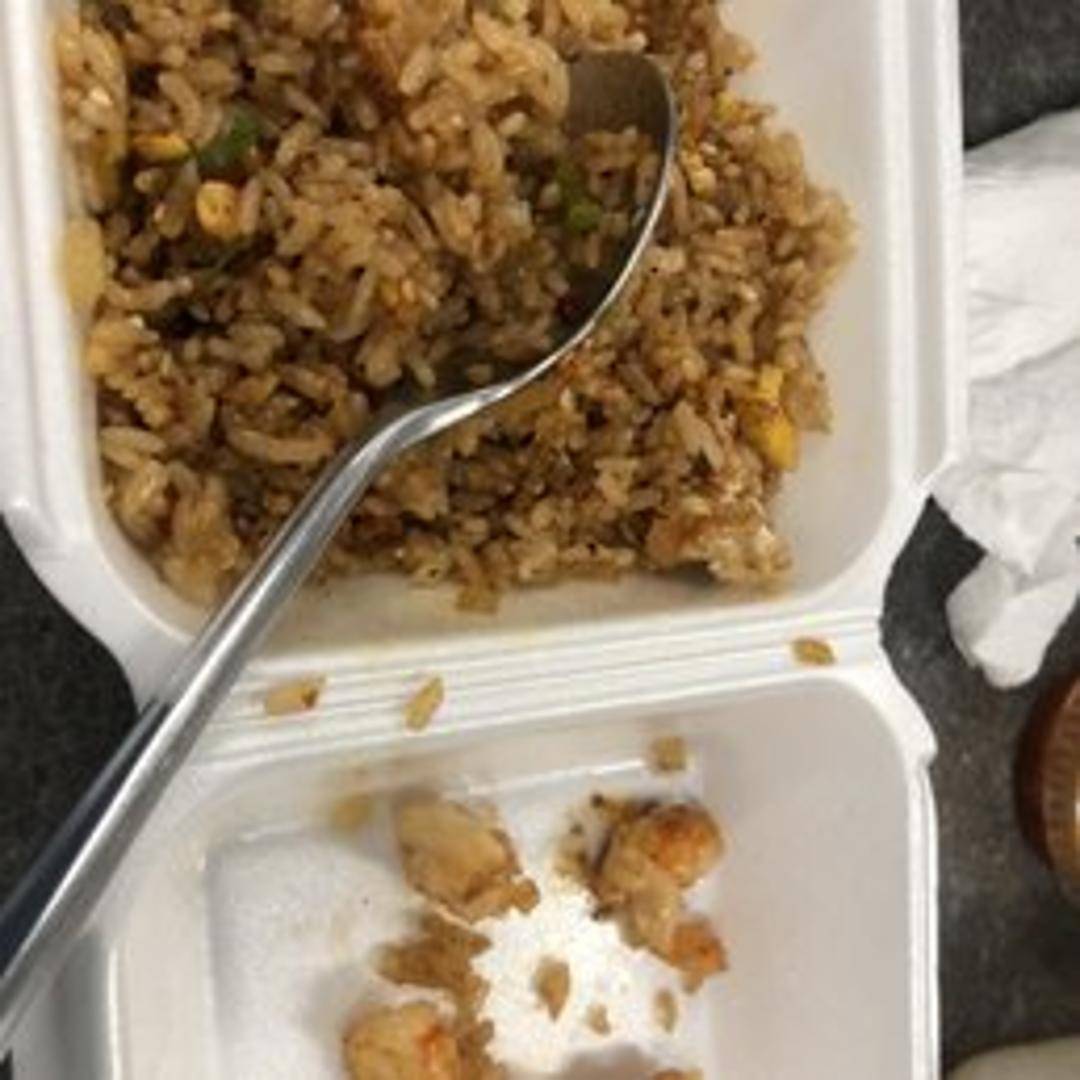 Classic fried rice stir-fried with succulent shrimp, fluffy rice, scrambled eggs, diced carrots, peas, and green onions. Seasoned with savory soy sauce and a hint of sesame oil.