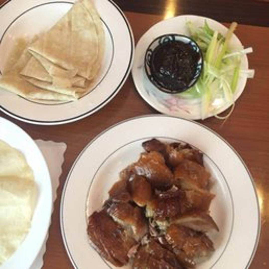 A traditional and highly prized Chinese delicacy renowned for its exquisitely crispy skin and remarkably tender, juicy meat. Expertly roasted to perfection, the duck is typically served with thin, delicate pancakes, fresh scallions, crisp cucumber sticks, and a rich hoisin sauce for a customizable and authentic culinary journey.