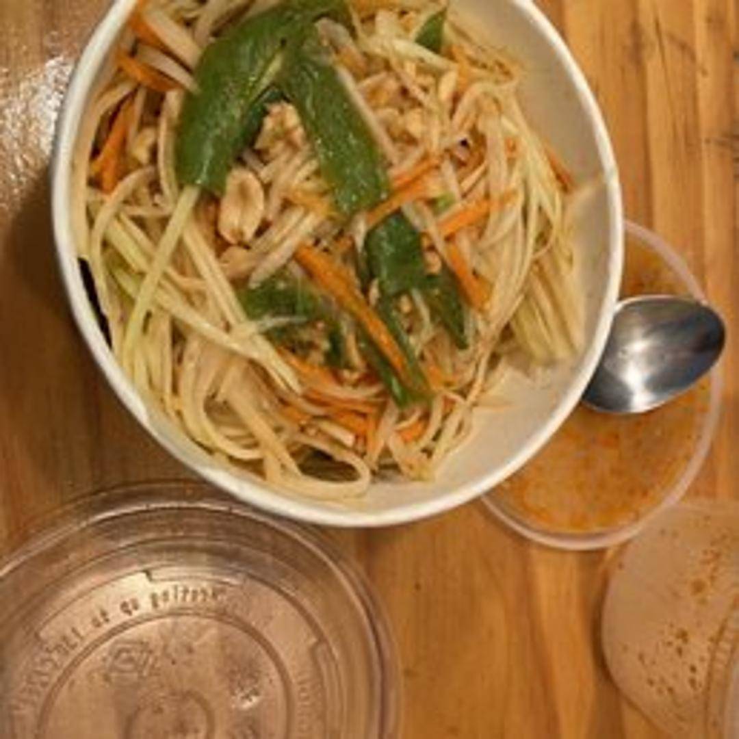 A vibrant and refreshing Thai classic, featuring shredded green papaya muddled with peanuts, long beans, tomatoes, and a zesty dressing of lime, chili, and fish sauce. A harmonious balance of sweet, sour, salty, and spicy.