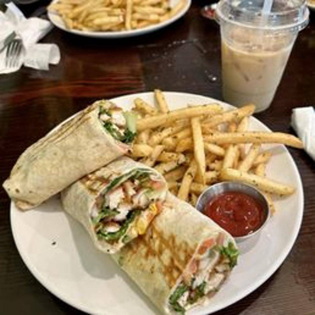 Crispy chicken strips, shredded lettuce, diced tomatoes, cheddar cheese, and your choice of sauce wrapped in a warm flour tortilla. A quick and tasty option.