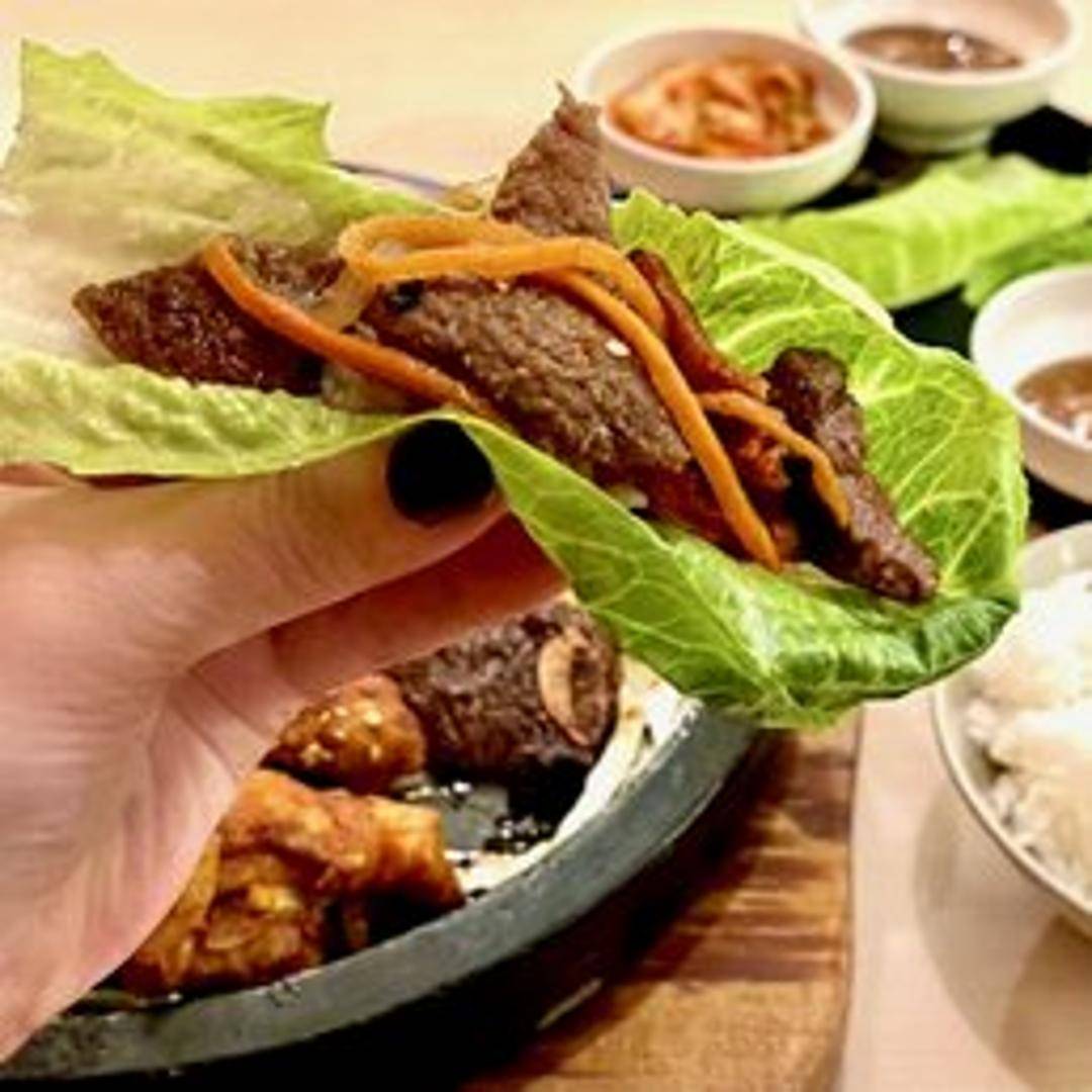 Enjoy a fresh and interactive dining experience with Aroma Korea's Bugoki Lettuce Wraps. This dish features generous portions of tender, thinly sliced marinated beef (Bulgogi), perfectly grilled to bring out its signature sweet and savory flavors. Served with crisp, fresh lettuce leaves and a side of steamed rice, along with traditional Korean ssamjang dipping sauce, allowing you to create your own customized, flavorful wraps that are both light and satisfying.