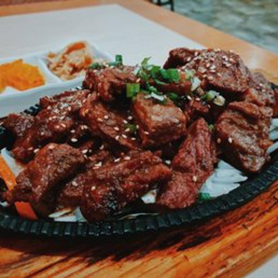 Savor our tender Beef Short Ribs, a beloved Korean specialty. Succulent beef ribs are marinated for hours in a rich, savory-sweet Korean soy-based sauce, then grilled to achieve a perfect caramelized crust and fall-off-the-bone tenderness, delivering an exquisite depth of flavor.