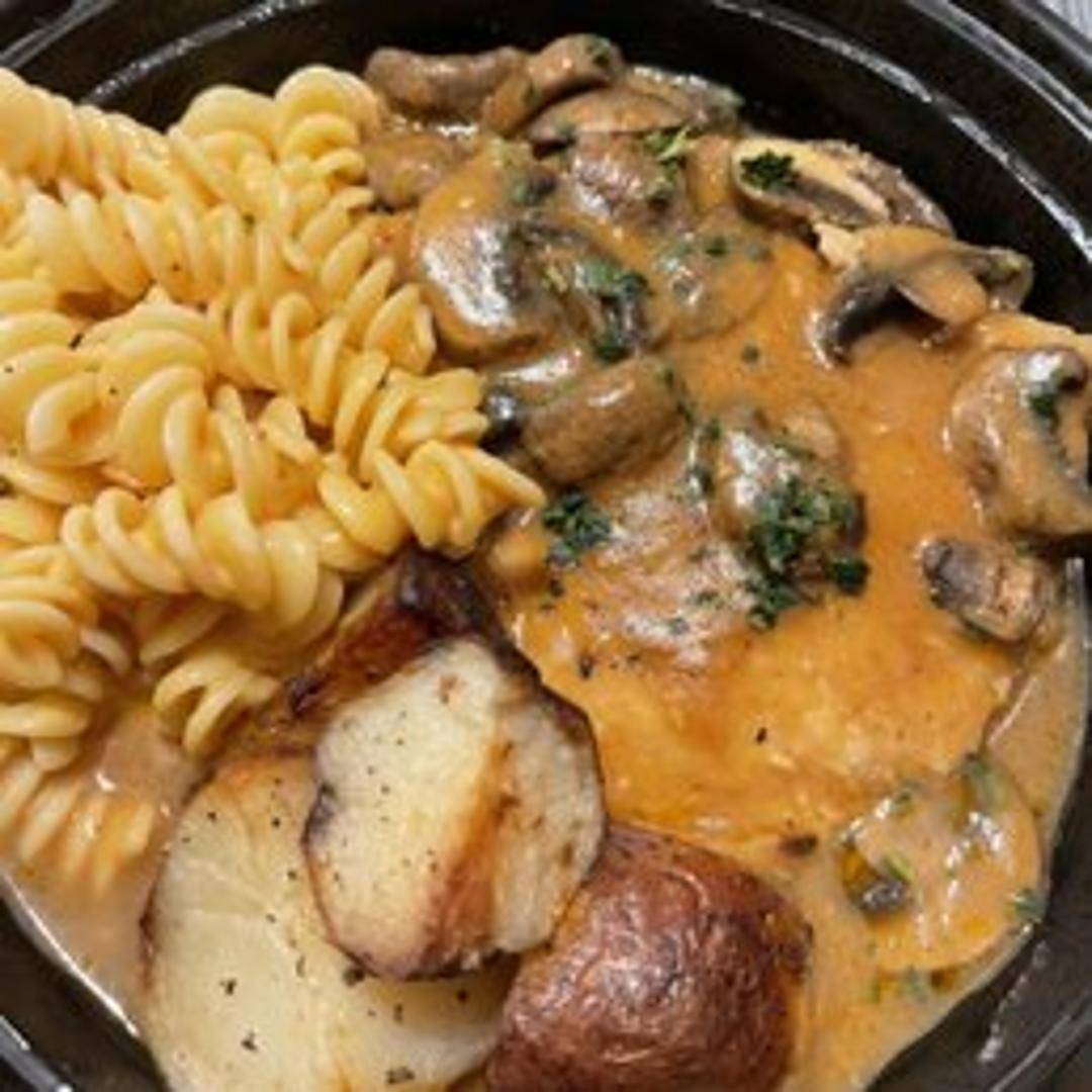 Tender chicken cutlets sautéed and simmered in a rich and savory Marsala wine sauce, often accompanied by mushrooms. Served with a side of pasta or vegetables.