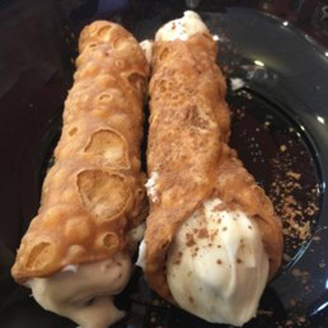 Crispy, tube-shaped pastry shells filled with a sweet, creamy ricotta cheese filling. Often dusted with powdered sugar and sometimes garnished with chocolate chips or candied fruit.
