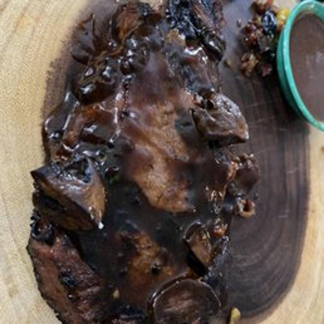 A generously marbled rib eye steak, expertly grilled to your desired temperature, and infused with the deep, complex flavors of a rich bourbon marinade. A truly unforgettable steak experience.