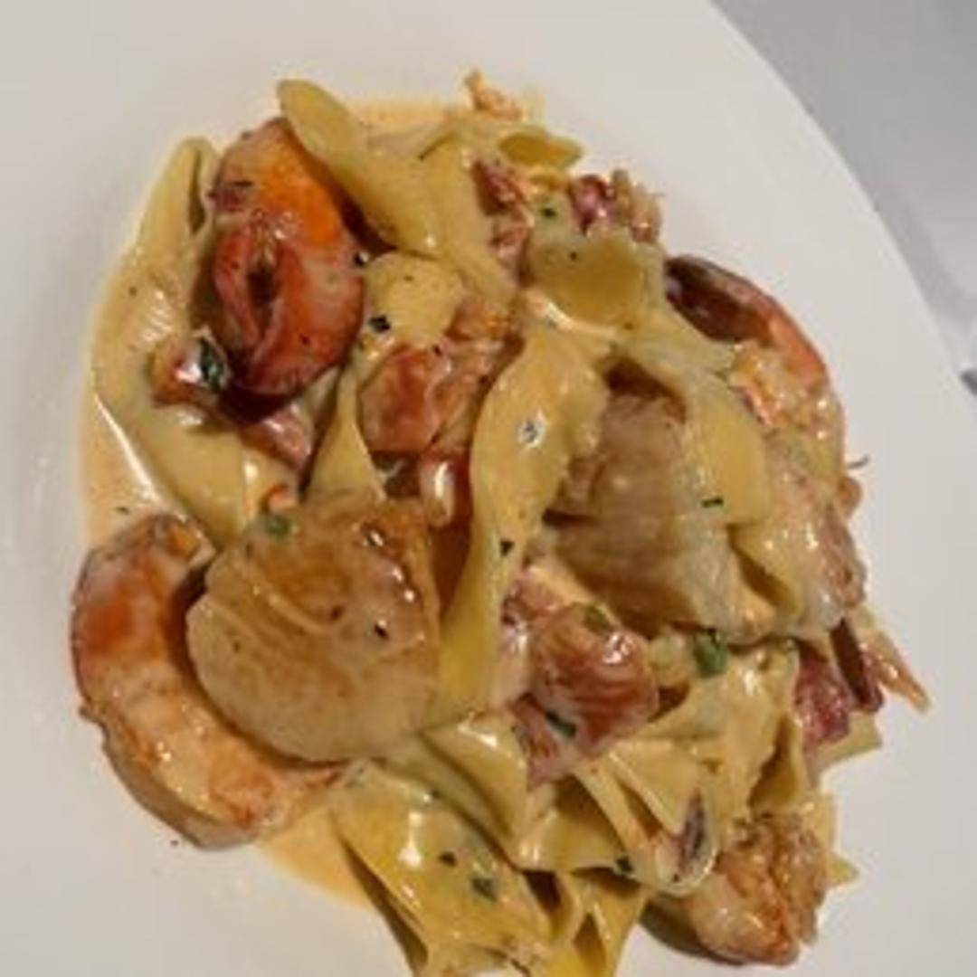 A classic Italian pasta dish featuring your choice of pasta (such as spaghetti, penne, or linguine) tossed in a rich and flavorful tomato-based sauce. The sauce is made with ripe tomatoes, garlic, onions, olive oil, and Italian herbs, creating a vibrant and savory experience. Often garnished with fresh basil and grated Parmesan cheese.