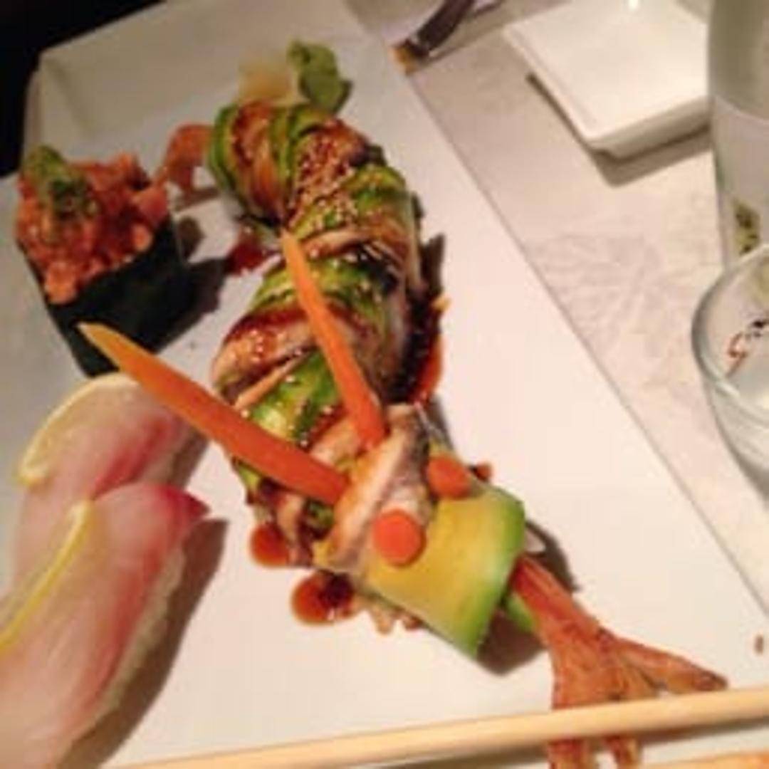 An exquisite and artfully crafted sushi roll, the Dragon Roll typically features tender grilled eel and crisp cucumber on the inside, beautifully topped with thin slices of fresh avocado. Drizzled with a rich unagi sauce, this roll offers a luxurious combination of savory, creamy, and subtly sweet flavors, often adorned with tobiko for a burst of color.