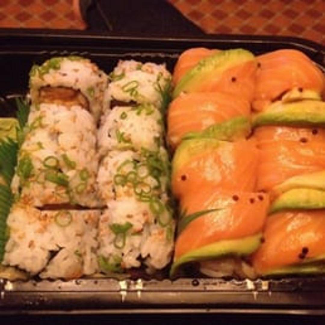 A classic and pure maki roll celebrating the rich, buttery flavor of fresh, premium salmon. Delicate slices of raw salmon are meticulously rolled with seasoned sushi rice and crisp nori seaweed, presenting a simple yet elegant taste experience that highlights the natural quality of the fish. Served with traditional accompaniments.