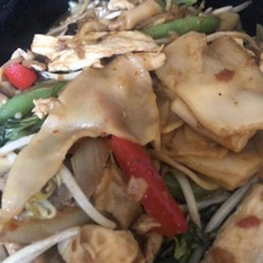 Experience the vibrant flavors of Asia with the 'Drunken Noodles' from Asian Bistro, located at 809 King St, Alexandria, VA 22314. This classic Thai stir-fried dish features wide, flat rice noodles expertly tossed with your choice of protein, fresh bell peppers, onions, and crisp basil leaves, all coated in a savory and spicy chili-garlic sauce. A perfect balance of heat and herbaceous notes, Drunken Noodles offers a truly authentic and satisfying culinary journey.