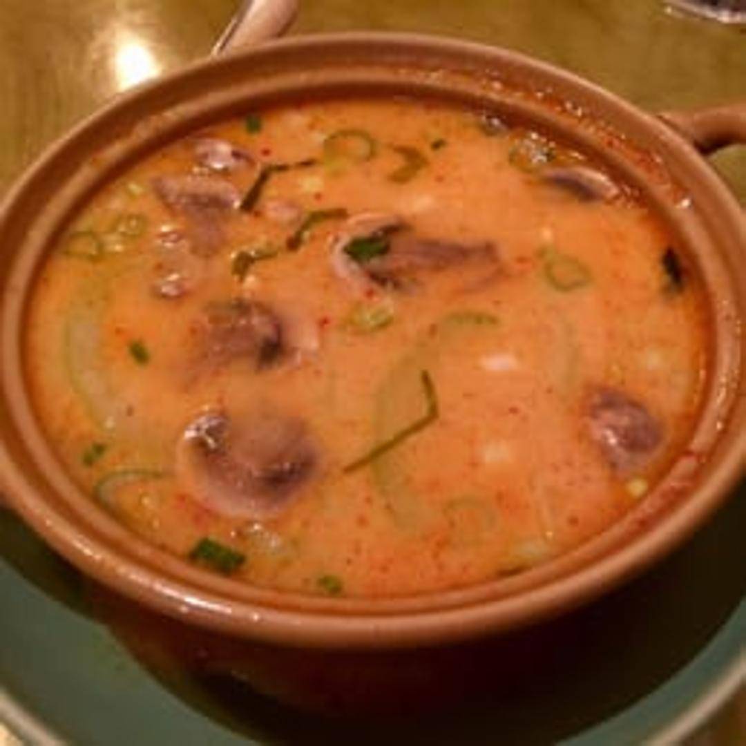 A classic Thai coconut milk soup bursting with aromatic flavors. Fragrant galangal, lemongrass, and kaffir lime leaves are simmered in a rich coconut broth with mushrooms and your choice of protein, finished with a hint of chili and fresh lime for a perfect balance of creamy, sour, and spicy.