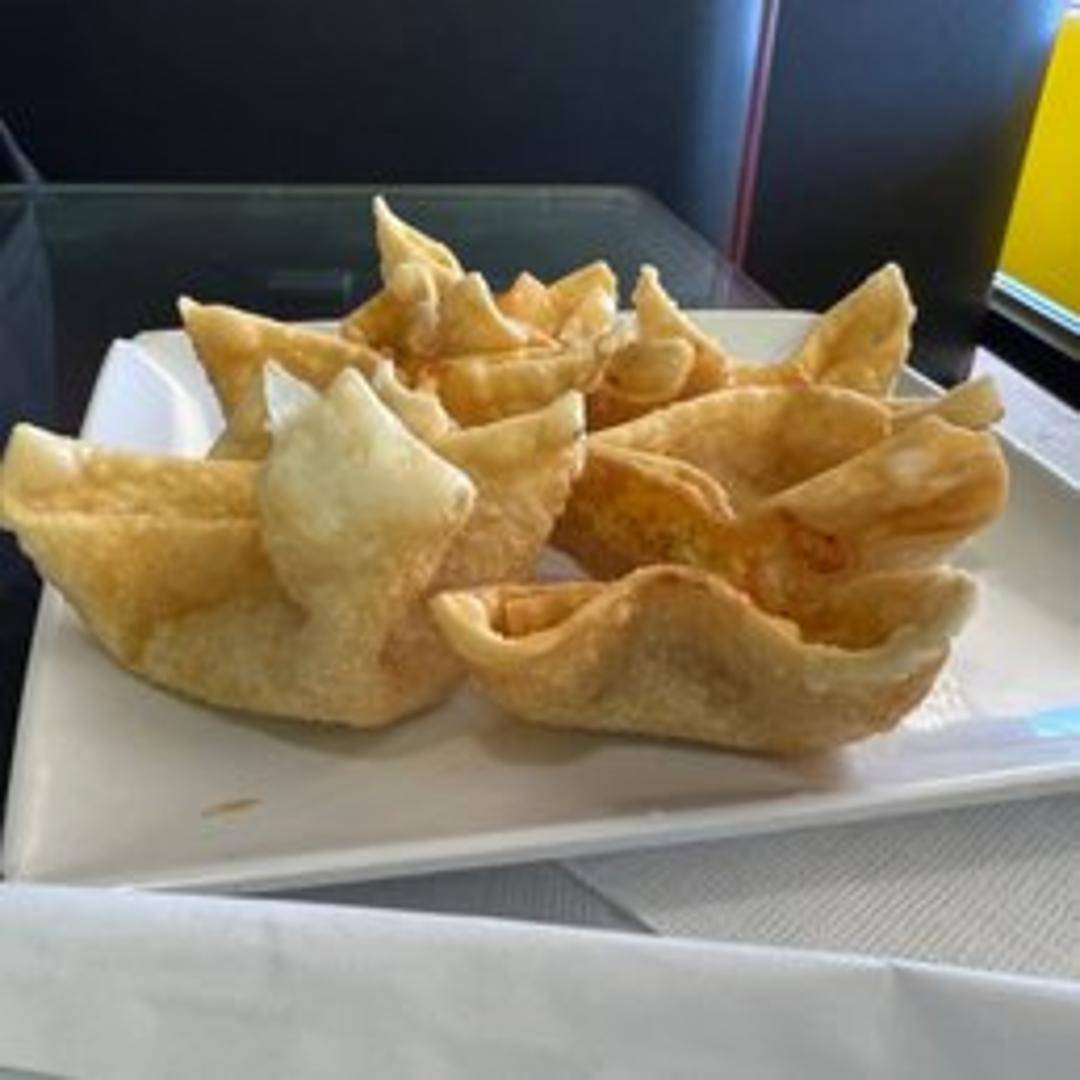 Crispy, deep-fried wontons filled with a creamy mixture of crab meat and cream cheese, served with a sweet dipping sauce.