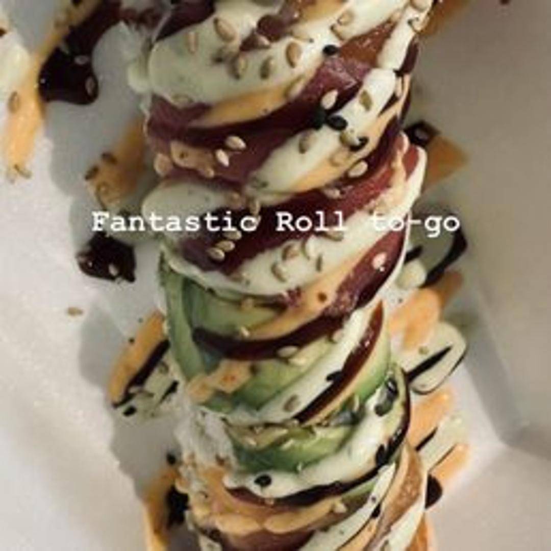 A specialty sushi roll featuring a combination of ingredients. Specific components vary, but often includes tempura shrimp, avocado, spicy tuna, and various sauces.