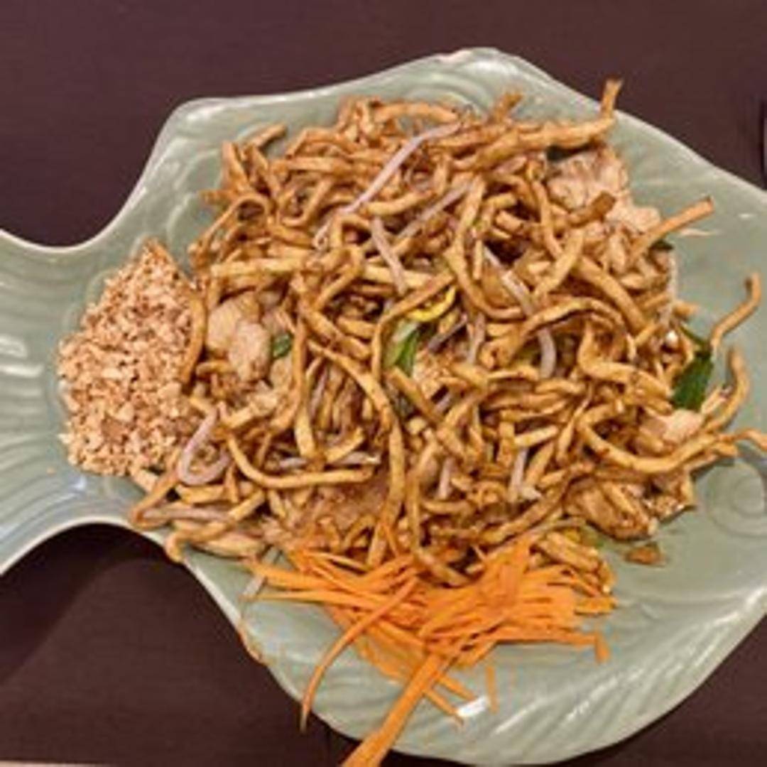 Asiana's signature rendition of the iconic Thai stir-fried noodle dish, featuring delicate rice noodles wok-tossed with a tangy tamarind sauce, scrambled egg, bean sprouts, and crushed peanuts. This unique 'Crispy' version adds an exciting textural element, elevating the classic flavors with an irresistible crunch.