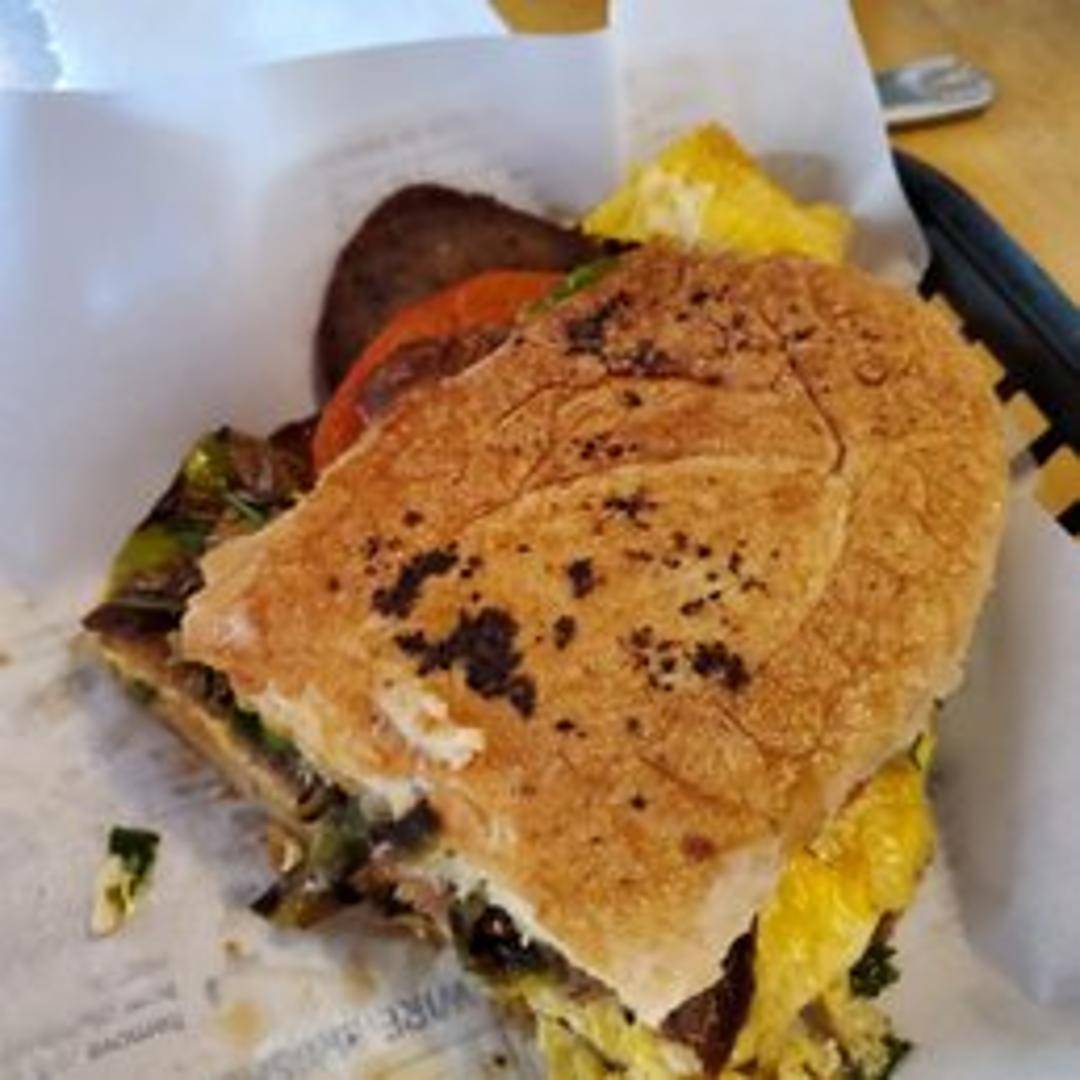 Your choice of sausage, bacon, or ham with fluffy scrambled eggs and melted cheese served on a toasted English muffin.