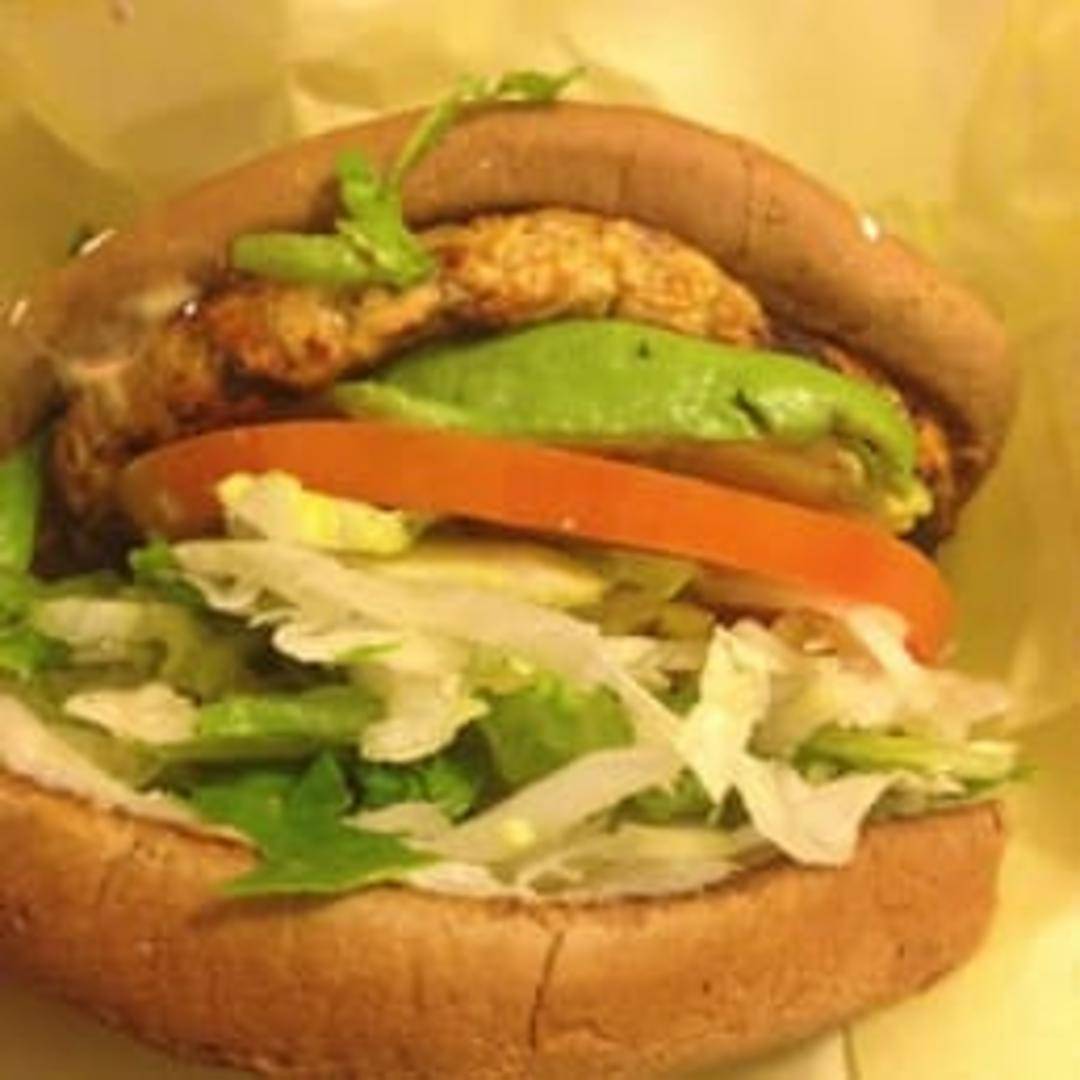 A flavorful plant-based patty served with crisp lettuce, ripe tomato, and your choice of sauce on a toasted bun. A delicious and satisfying meat-free option.