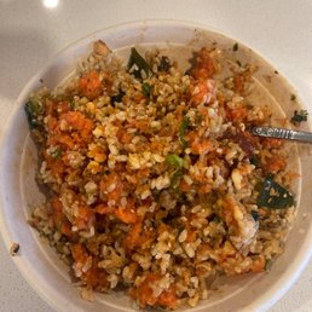 A vibrant bowl featuring fresh, diced tuna marinated in a spicy sauce, served over sushi rice with avocado, seaweed salad, edamame, and a drizzle of sesame oil.