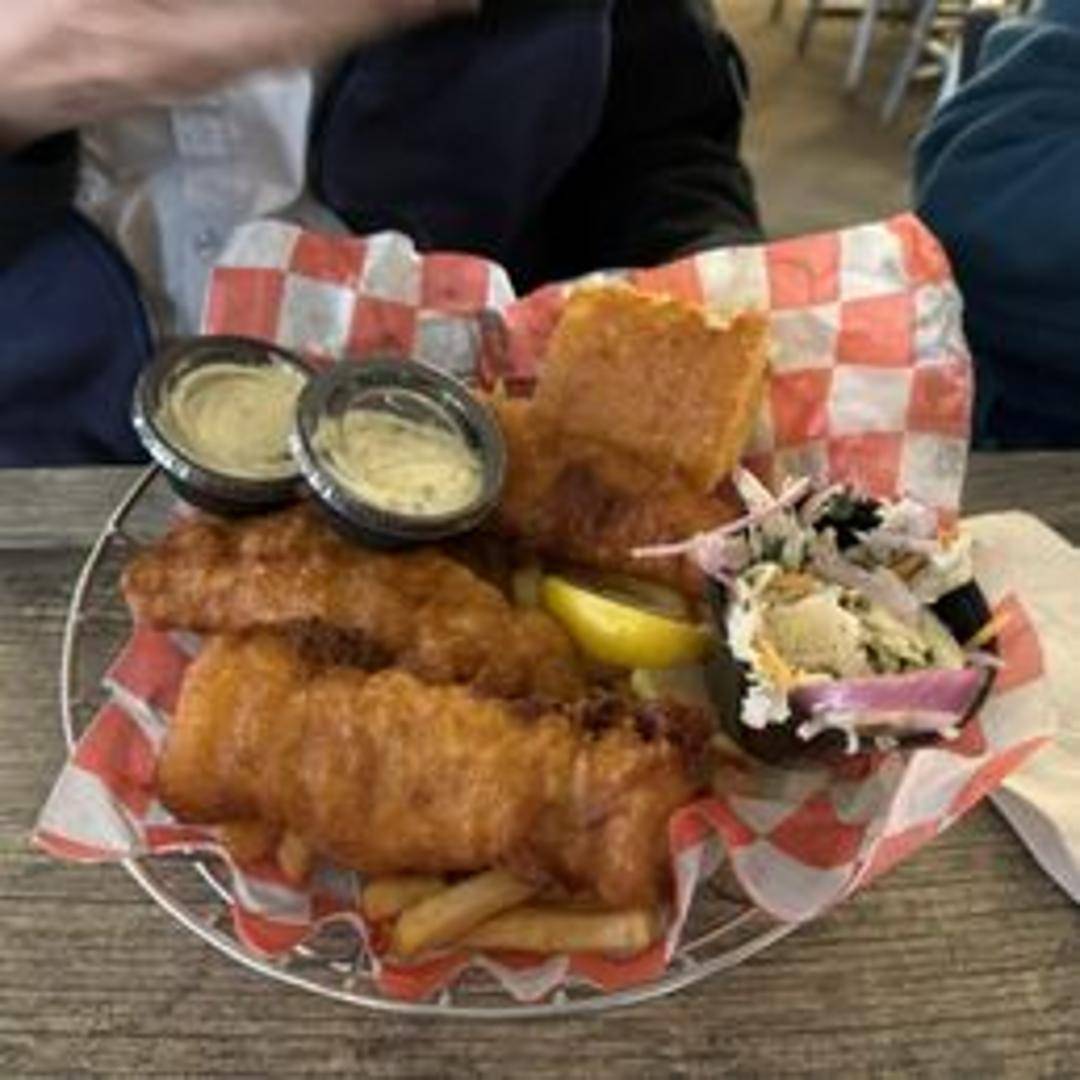 Crispy, golden-fried cod fillets served with a generous portion of seasoned french fries. Includes tartar sauce and a lemon wedge.