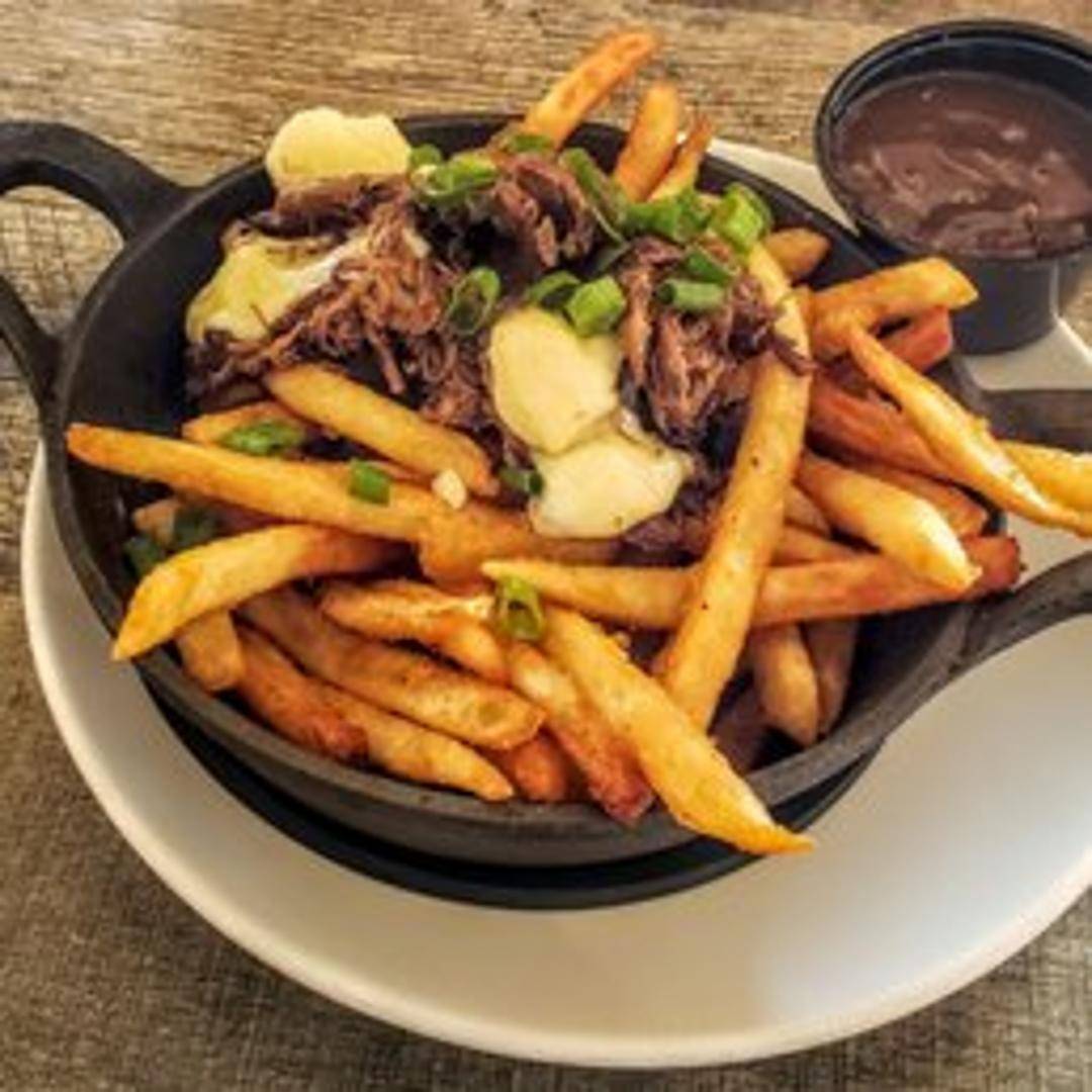A hearty portion of french fries smothered in rich, slow-cooked pot roast, cheese curds, and savory gravy.