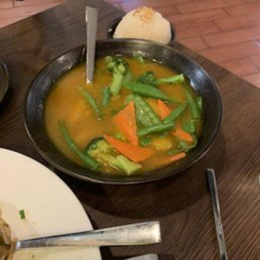 A medley of fresh vegetables cooked with pumpkin in a savory sauce. A comforting and slightly sweet dish. Served with rice.