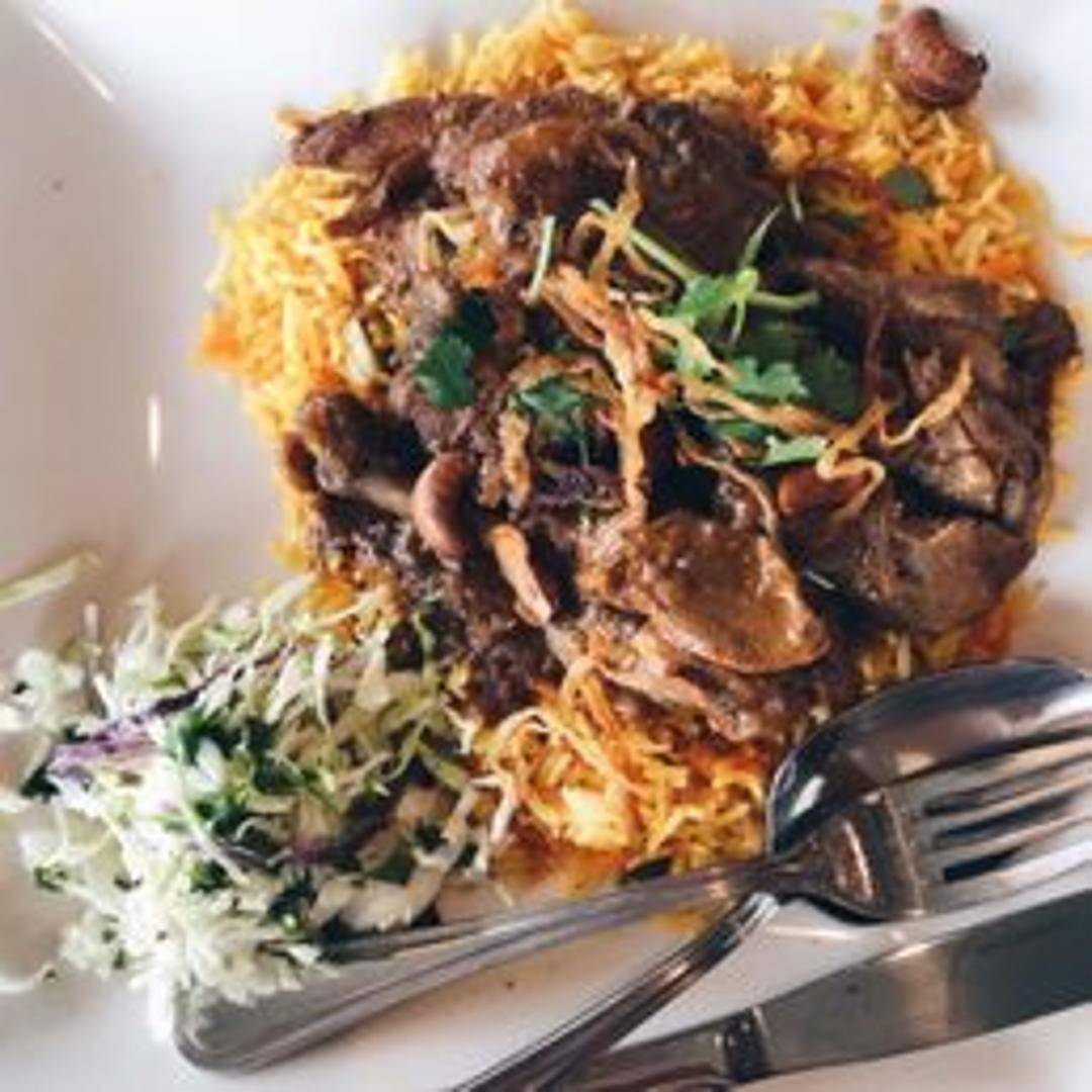 Fragrant basmati rice cooked with tender pieces of chicken in a rich and flavorful blend of Burmese spices, herbs, and aromatics. Often includes ingredients like dried plums, cashews, and raisins for added texture and flavor complexity.