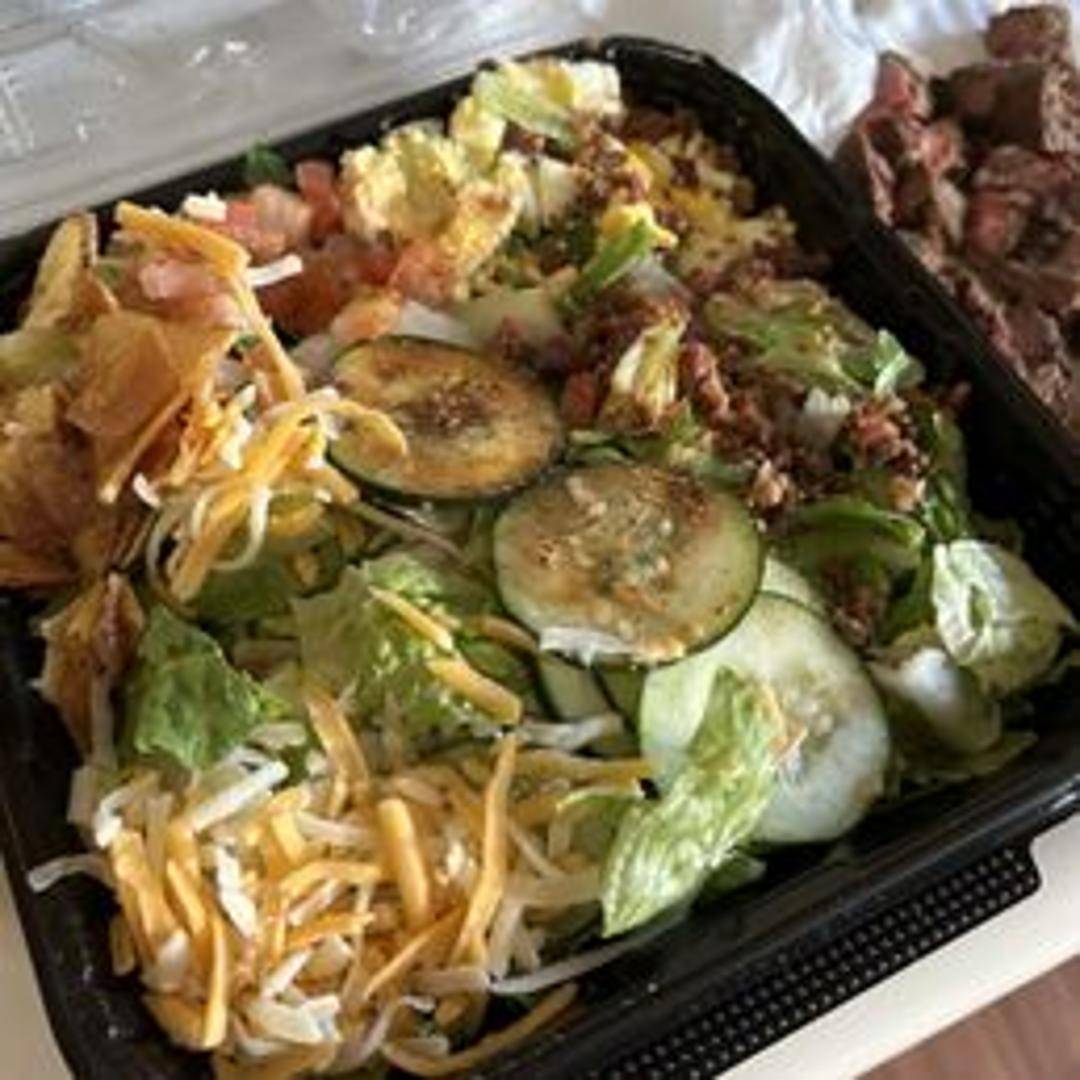 Crisp mixed greens topped with grilled chicken, crispy bacon, chopped hard-boiled egg, ripe avocado, crumbled blue cheese, and diced tomatoes. Served with your choice of dressing.