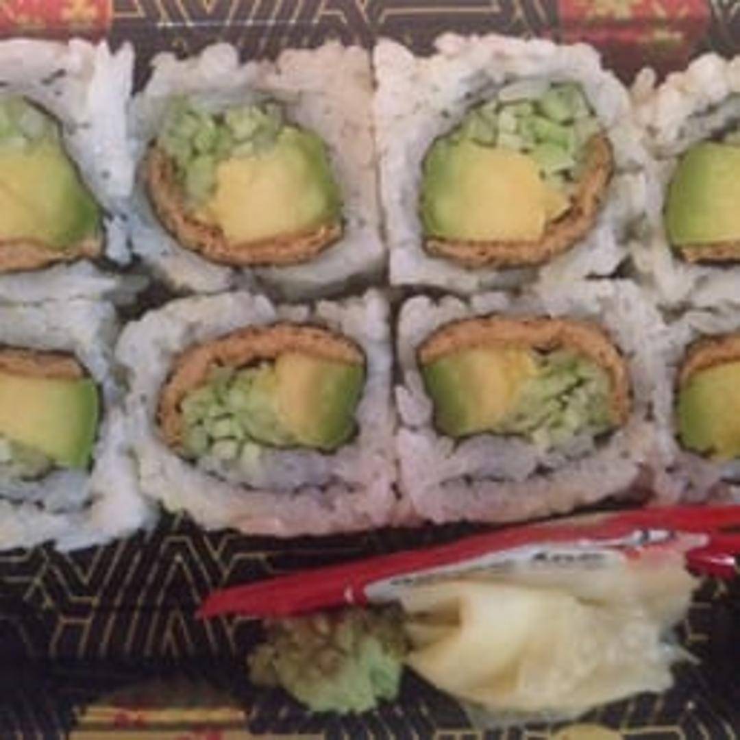 A delightful sushi bowl featuring seasoned sushi rice topped with fresh avocado, a variety of colorful chirashi ingredients (such as seaweed salad, edamame, and pickled ginger), and a drizzle of flavorful sauce. A vegetarian-friendly option offering a balanced and refreshing sushi experience.