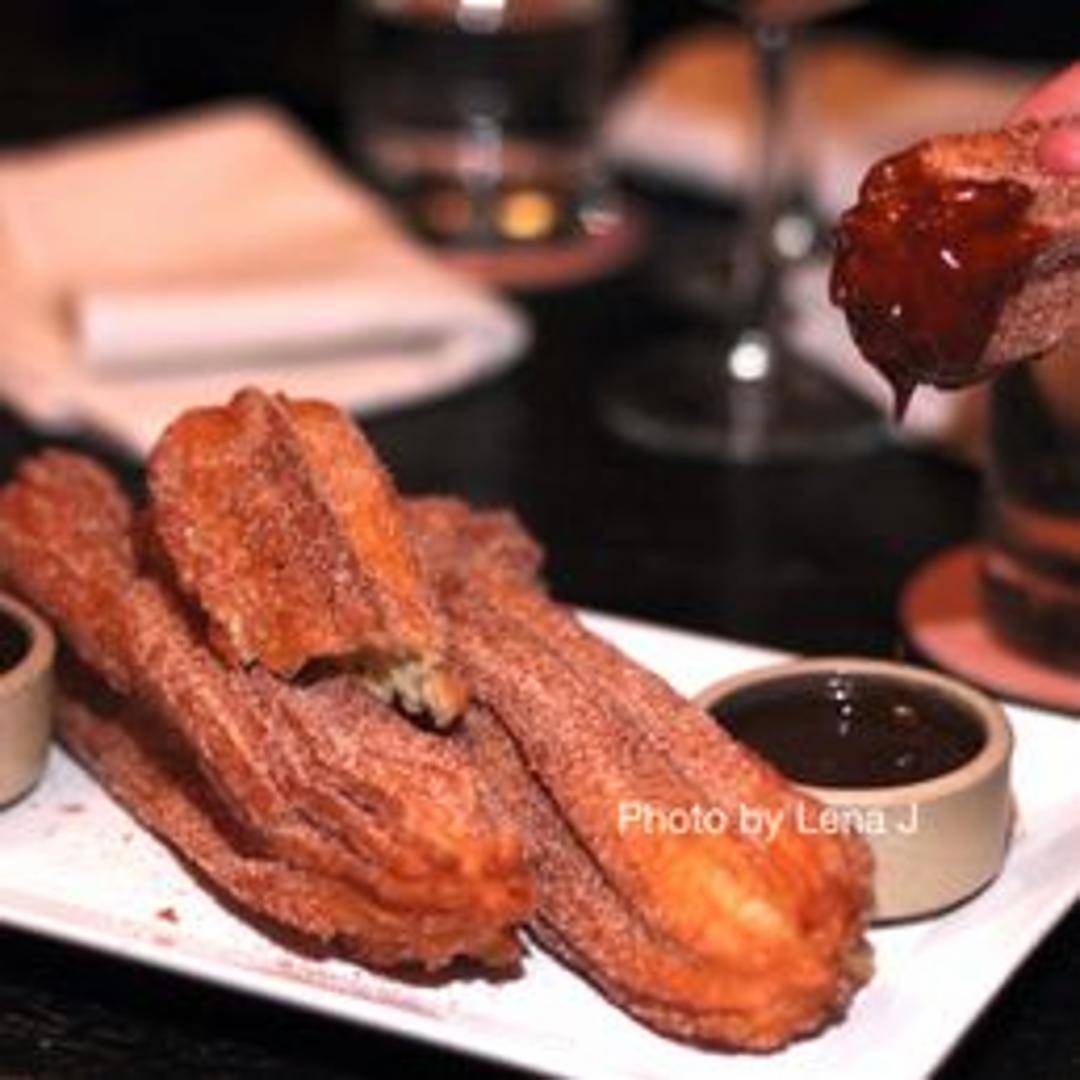 Fried dough pastries, typically dusted with cinnamon sugar and served with a rich chocolate dipping sauce.