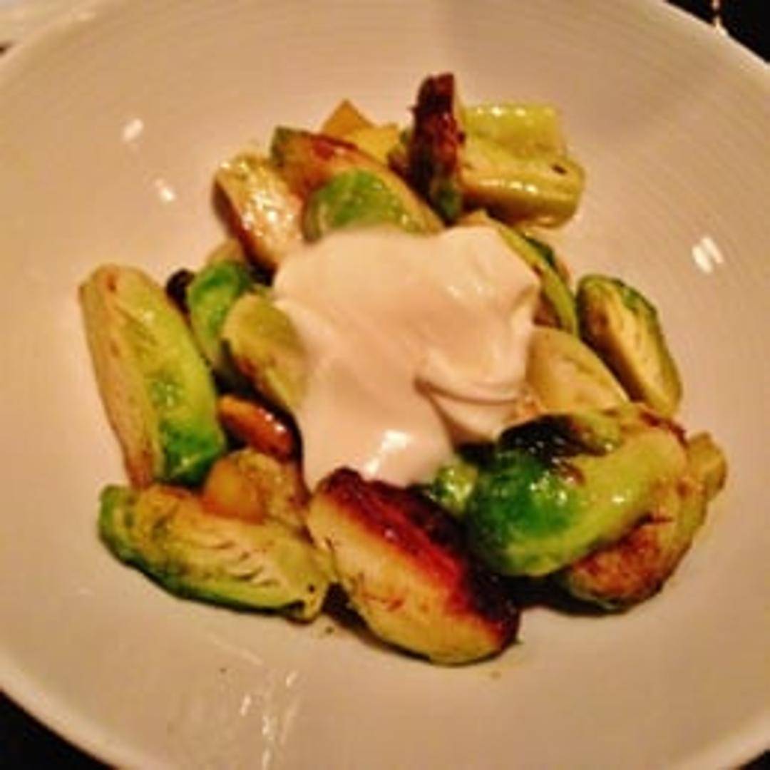 Roasted Brussels sprouts and apples, tossed with toasted nuts and a tangy vinaigrette. A delicious combination of sweet, savory, and nutty flavors.