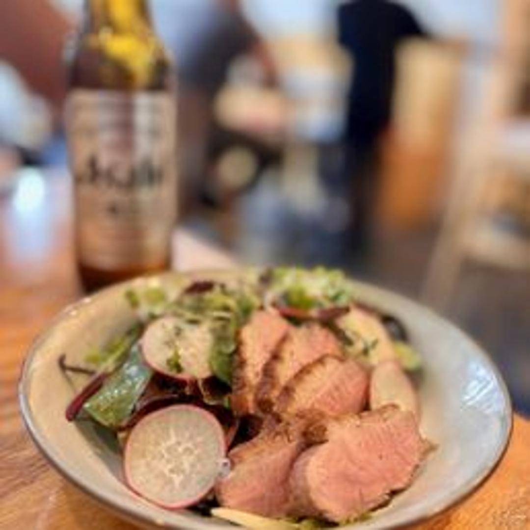 Succulent Maple Leaf Farm duck breast, expertly roasted to achieve crispy skin and tender, flavorful meat. A classic preparation highlighting the natural richness of the duck.