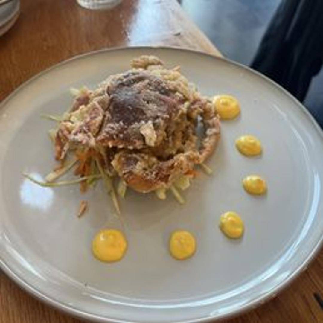 Fresh soft shell crab, lightly battered and fried to crispy perfection. Served whole, these crabs are prized for their delicate flavor and the ability to be eaten entirely. Typically accompanied by a dipping sauce and garnished with fresh herbs.